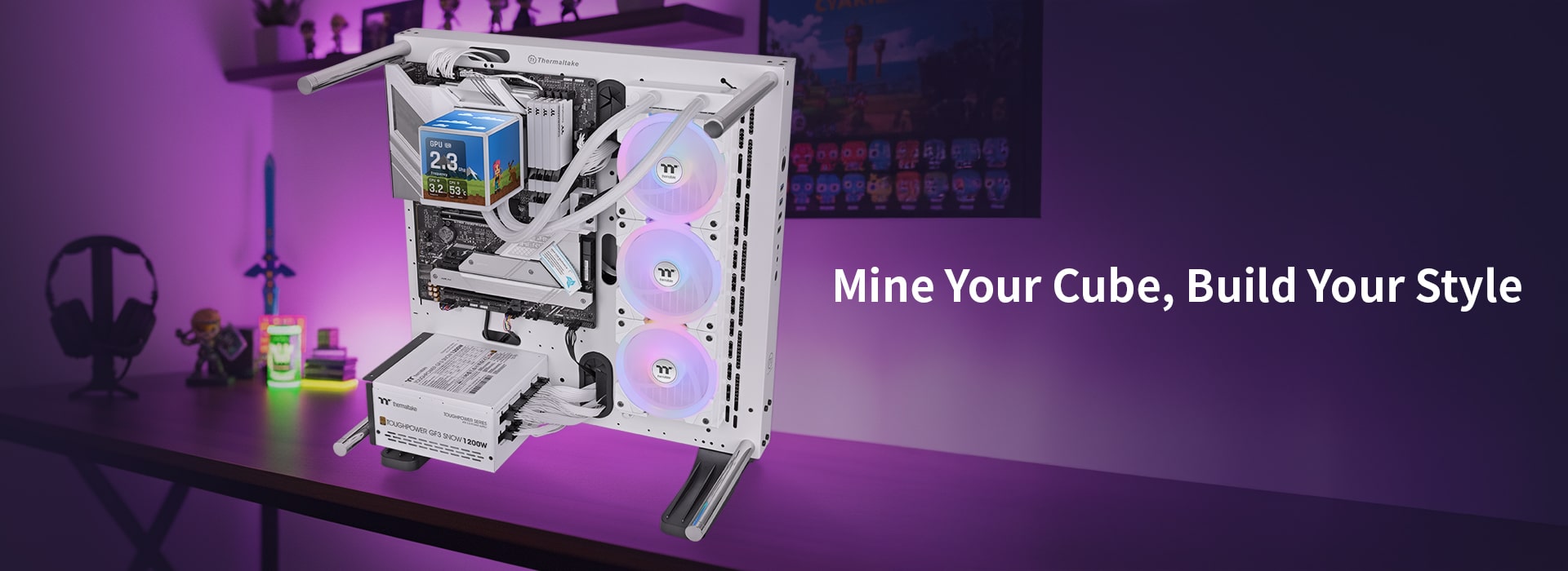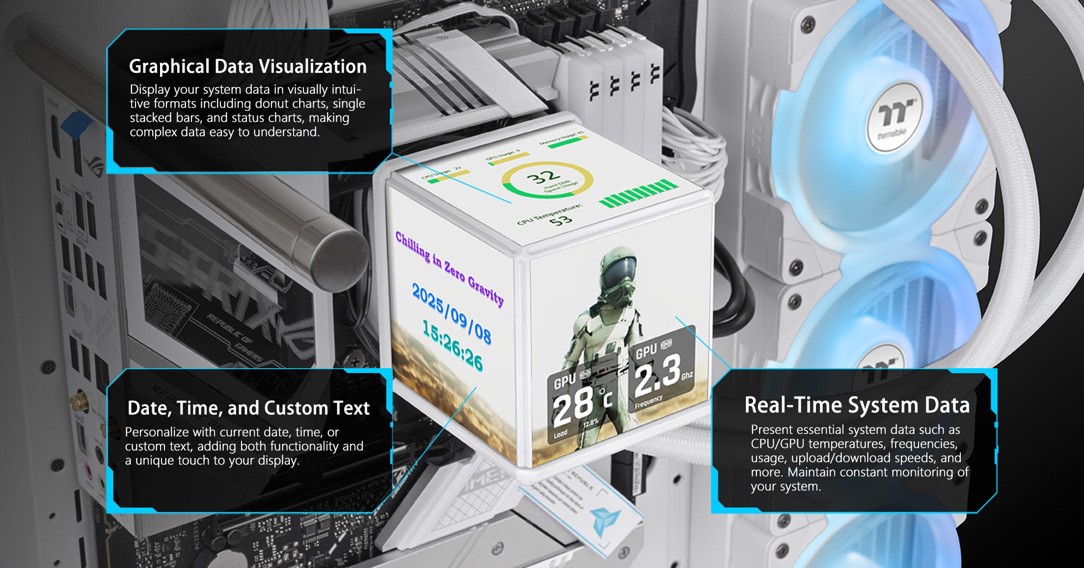 Thermaltake launches dedicated software for MINECUBE 360 Ultra, allowing full customization of the screen. Choose your preferred background and display your favorite real-time system stats or personal information with ease.